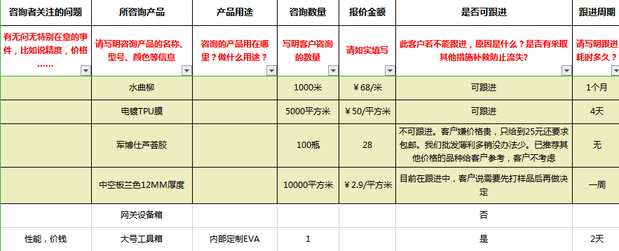 合作半年以后把整体的内贸市场给打开了,咨询效果有了。但是碰到的一个情况就是很多在网络上面的咨询客户,打了样板以后就没有了下文。