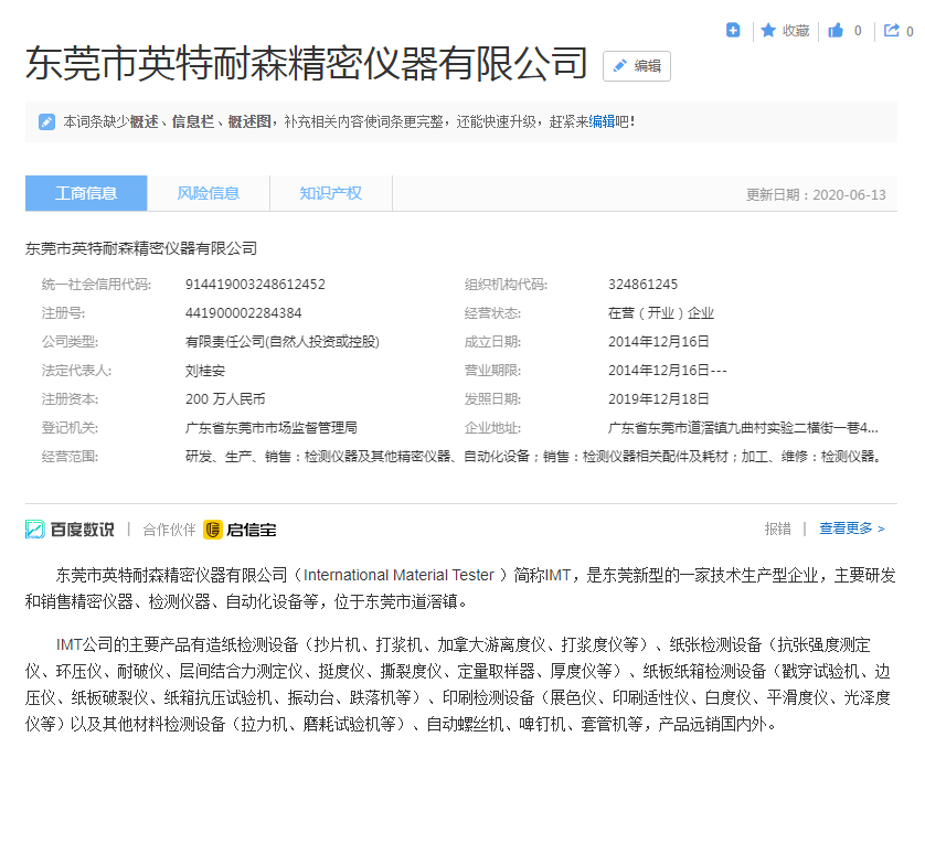本身情况:英特耐森是一家专业的检测仪器生产厂家,主要做造纸检测设备、纸张检测仪器等