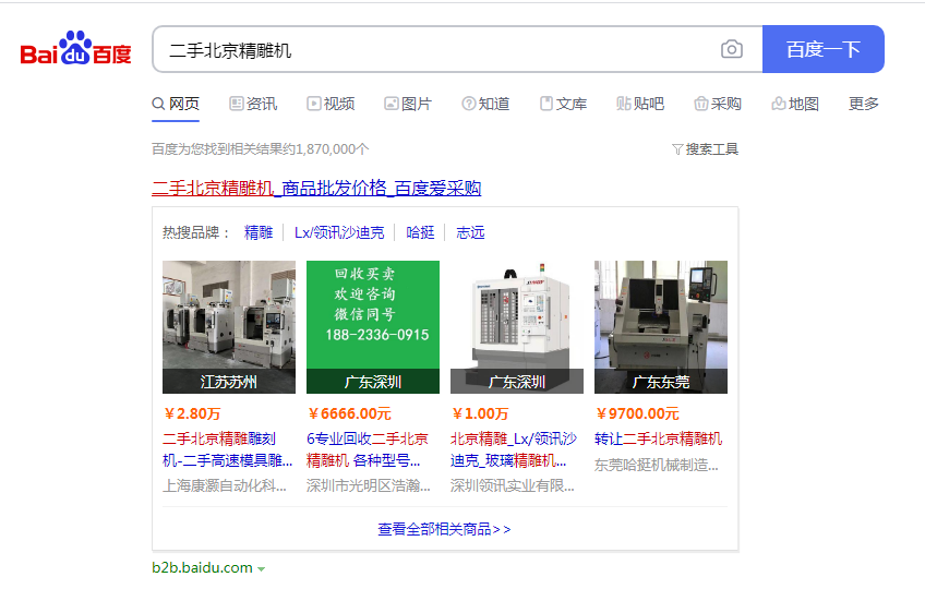 在接手哈挺爱采购项目前,对于哈挺这家公司的产品、定位,以及与同行之间的优劣势进行了分析,首先东莞哈挺机械制造有限公司十年专做北京二手精雕机的销售、维修、回收、租赁,业界口碑良好。公司定位是为客户提供二手北京精雕机销售、安装、售后一条龙服务。资历口碑与优质的服务是哈挺与同行之间最大的差异优势。抓住这几点优势,快速获取到用户的咨询。
