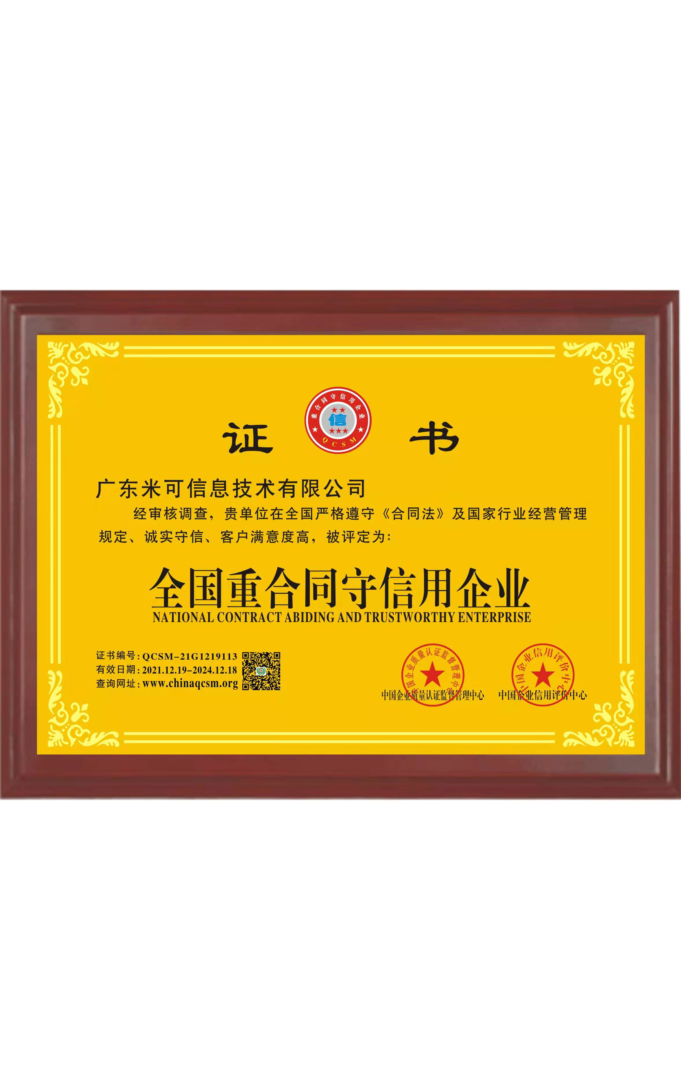 全国重合同守信用企业