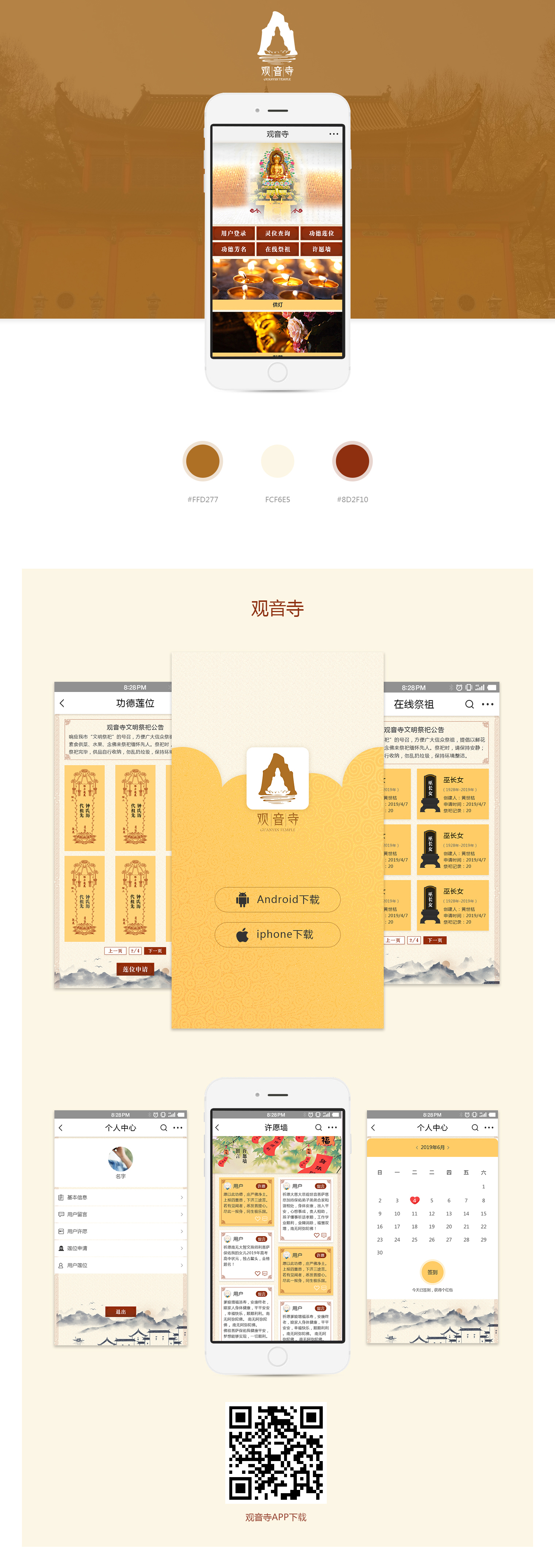 大岭山观音寺接引堂APP项目开发,打通线上线下祭拜及灵位功德申请功能,线上祭祖及接引堂权限(登录进入)VR全景展示,无需到达现场具有身临期境的用户体验,全景分为6个场景(祭拜,灵位4个区域,走廊),祭拜功能具有供花,供果,上香等JS动态效果,祭拜更真实。亡人祭拜页面通过视频介绍生平事迹,让新朋好友,子孙后代更了解先祖事迹。