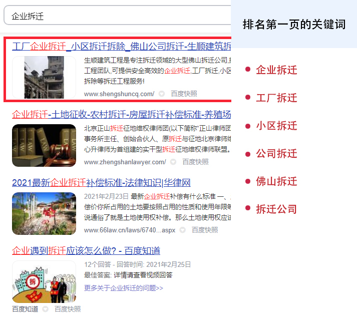 5个关键词排名首页