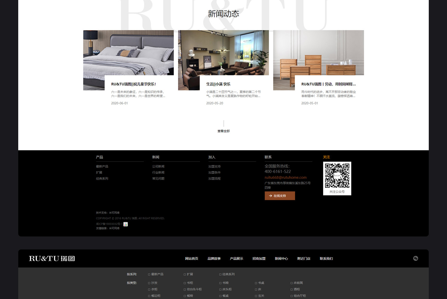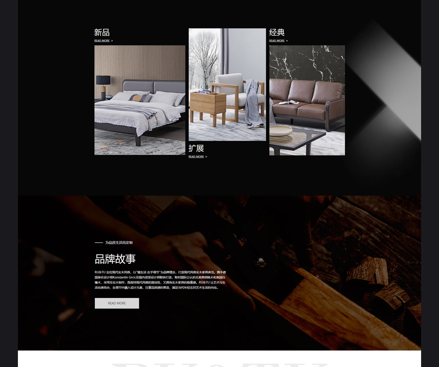 RU&TU瑞图家具主要北欧风进口家具,网站建设以突出品牌为主,结合产品及行业特性,多站色调采用深色设以突出产品特色,整体风格以简洁为主附合北欧家具的简约风,网站加了门店查询功能,产品筛选功能,便于客户快递查找产品。