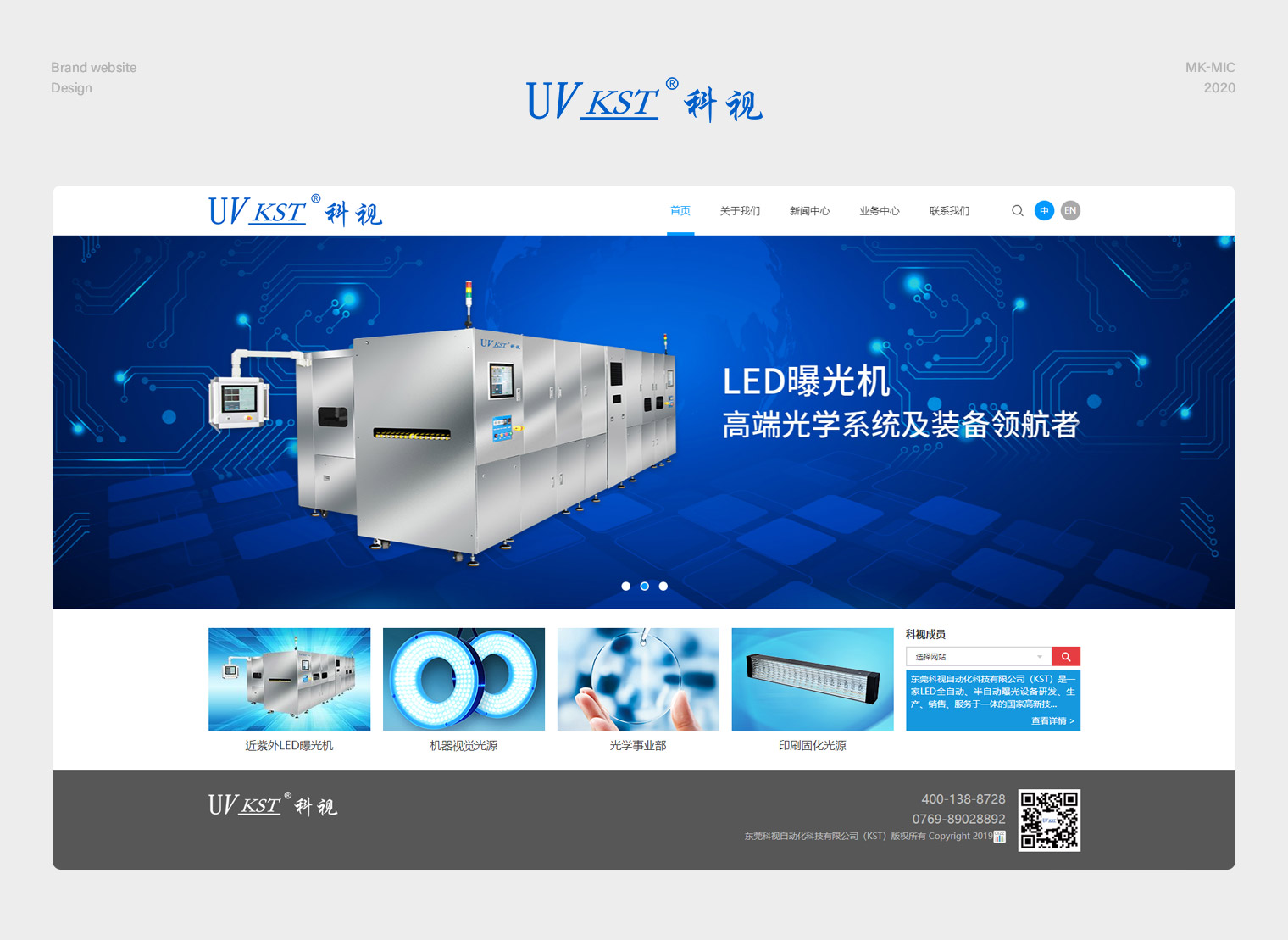 科视自动化是一家LED全自动、业务有近紫外LED曝光机、机器视觉光源、光学事业部、印刷固化光源。根据客户的业务方向为其量身订制了品牌型网站,提升在网络上的形象。根据用户的浏览习惯,采用简约风格的设计,一目了然,让用户能直接找到对应的内容。