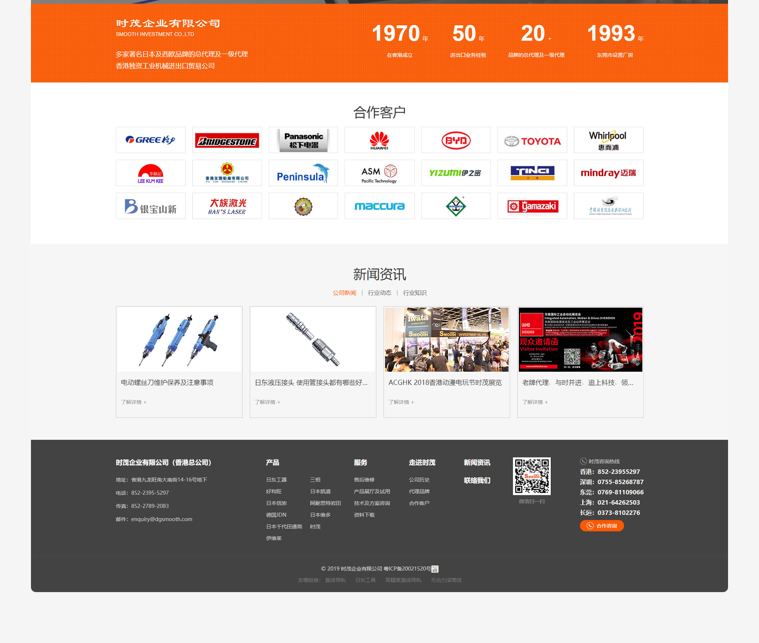 时茂集团香港总公司于1970年10月成立,专门从事工业用机械进出口、批发和零售业务超越48年。凭着优质产品及卓越的服务精神,在市场赢得广泛客户的认可及赞誉,在工业用机械产品销售的领保持专业的地位。