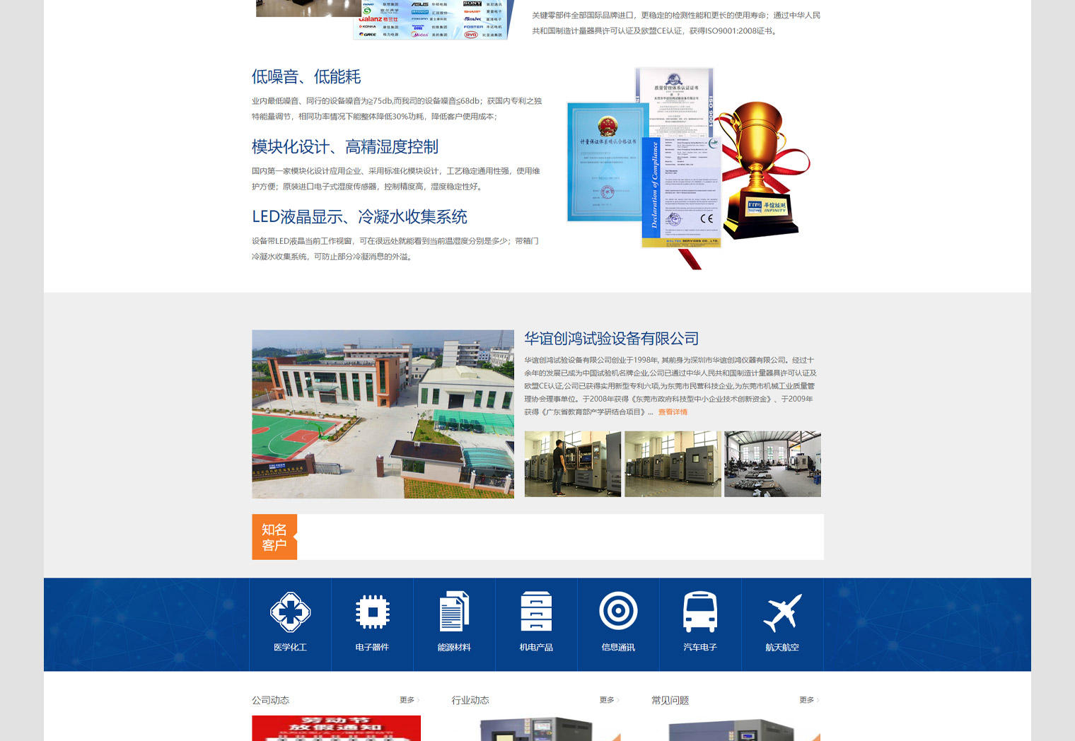 华谊检测交易代码:663541,集研发、生产、销售于一体,高低温箱、高温老化房、冷热冲击箱、恒温恒湿试验箱,网站建设以营销推广为主,结合华谊检测行业定位:营销、品牌、质量三大需求,网站设计上要突出公司品牌形像,又要解决营销问题,通过网络获取客户询盘,网站内容布局解决了客户需求问题。