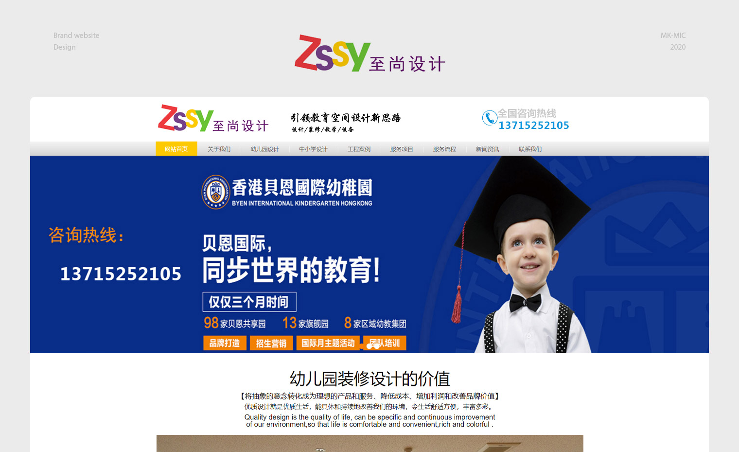 至尚石业主营以幼儿园设计,学校设计为主,网站建设以品牌创意为主,整站结合公司行业特性及LOGO色调,UI用色上采用多色调为主,突出了幼儿园装修的风格特色,内容以案例为主,体现出至尚实业在行业中的经验。