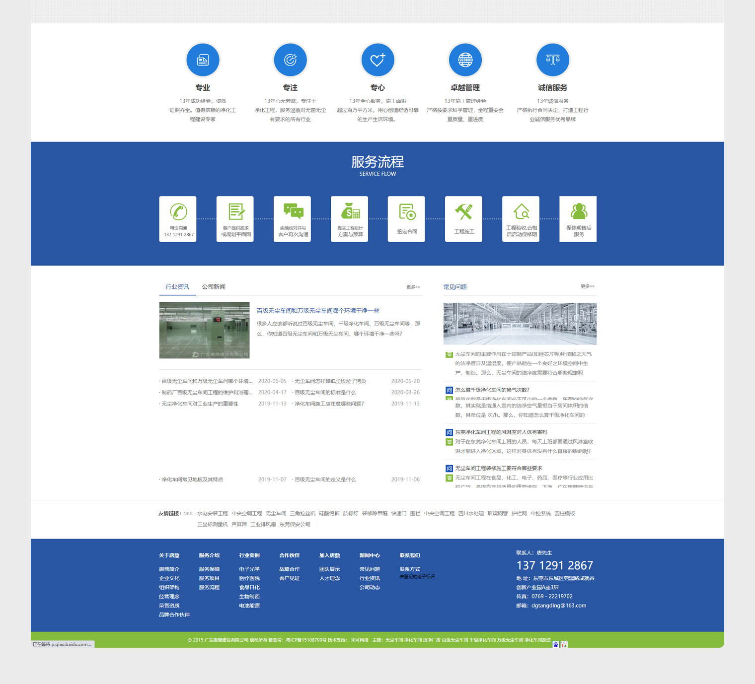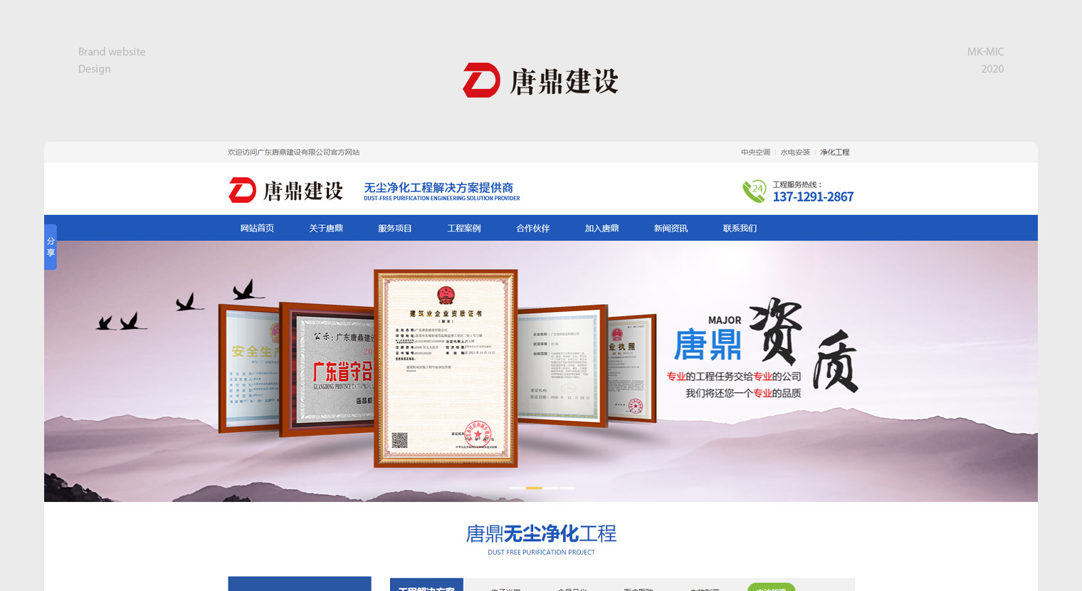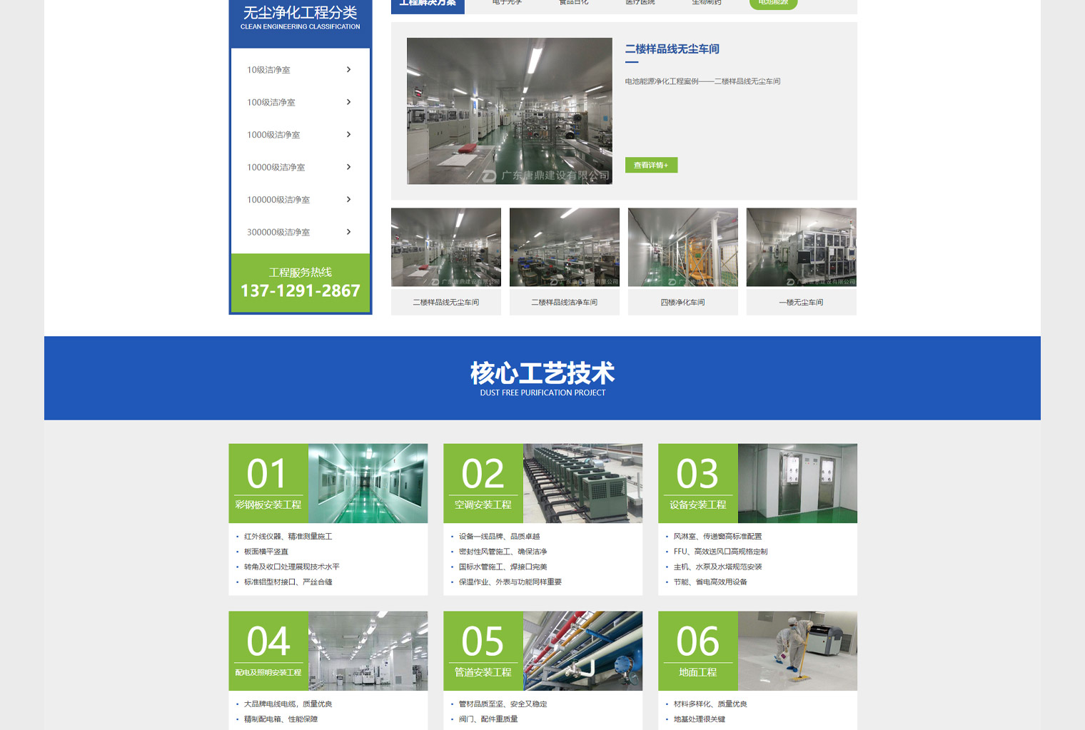 唐鼎建设自有施工团队,做过很多大的工程项目,网站建设过程中考虑到很多同行都是工程外包,无法保障质量的问题,网站中展示了大量的工程案例及施工过程的现场案例,整个网站对于客户来讲真实性很强,一眼区分出公司实力上的差距;结合客户行业特性(无尘、环保、绿色)及客户关注点(核心工艺技术)对网站进行了定制化设计。蓝绿主色调搭配符合行业调性同时让整个网站显得干净大气。