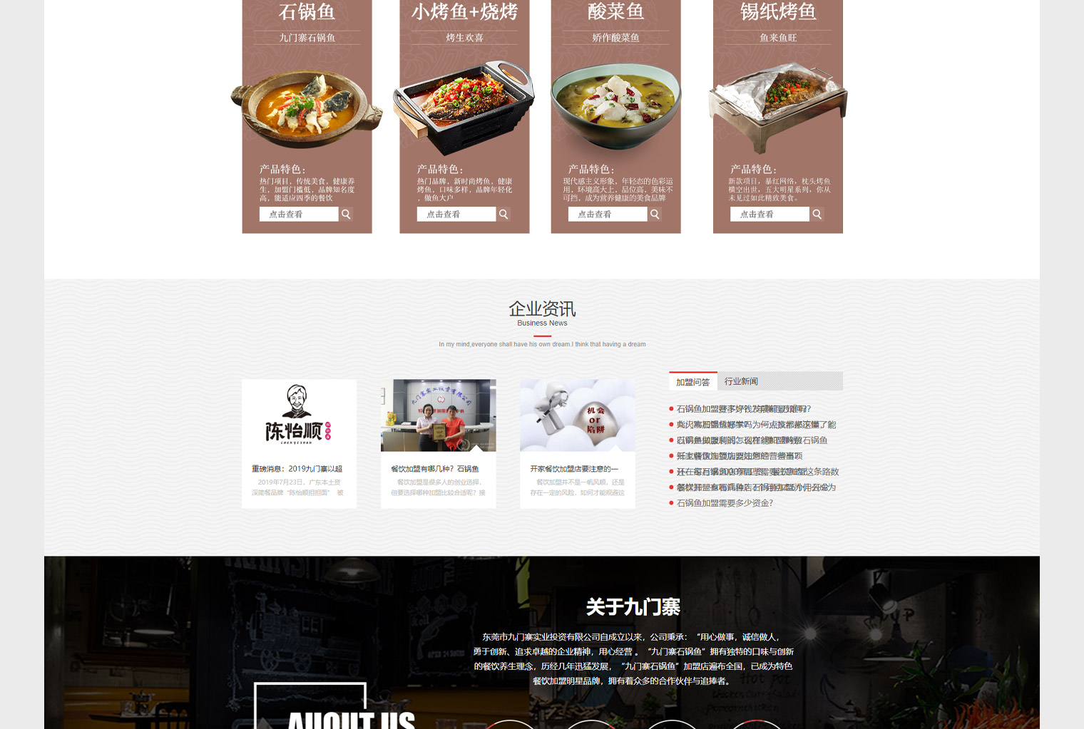 九门寨知名餐饮品牌,网站建设主要用于营销推广加商加盟为主,九门寨餐饮全部都是以鱼类为主,在页面设计上针对各种类型做了独立页面设计突出特色,石锅鱼_酸菜鱼_纸包鱼_锡纸小烤鱼等,每个都有独立的特色介绍,推广过程中不同关键词采用不同的落地页,用户进来看到的就是想要了解的信息。