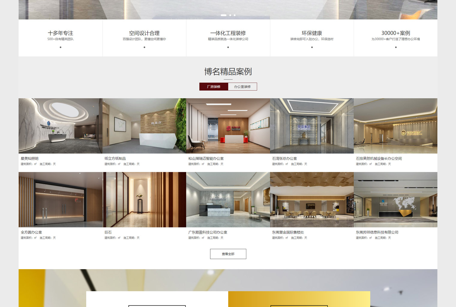 博名建设以产业升级为战略,全面推出融入了行业推崇的工艺材料及环保材料的"精钻工程",联合材料厂家研究开发"优质、低碳、环保"材料,在继承传统广东施工工艺精华的基础上大胆改良创新,形成了博名独树一帜的施工工艺特色。该网站适用于电脑、手机等不同设备的适配,方便了用户观看。经过充分的设计,对案例进行了充分的展示。