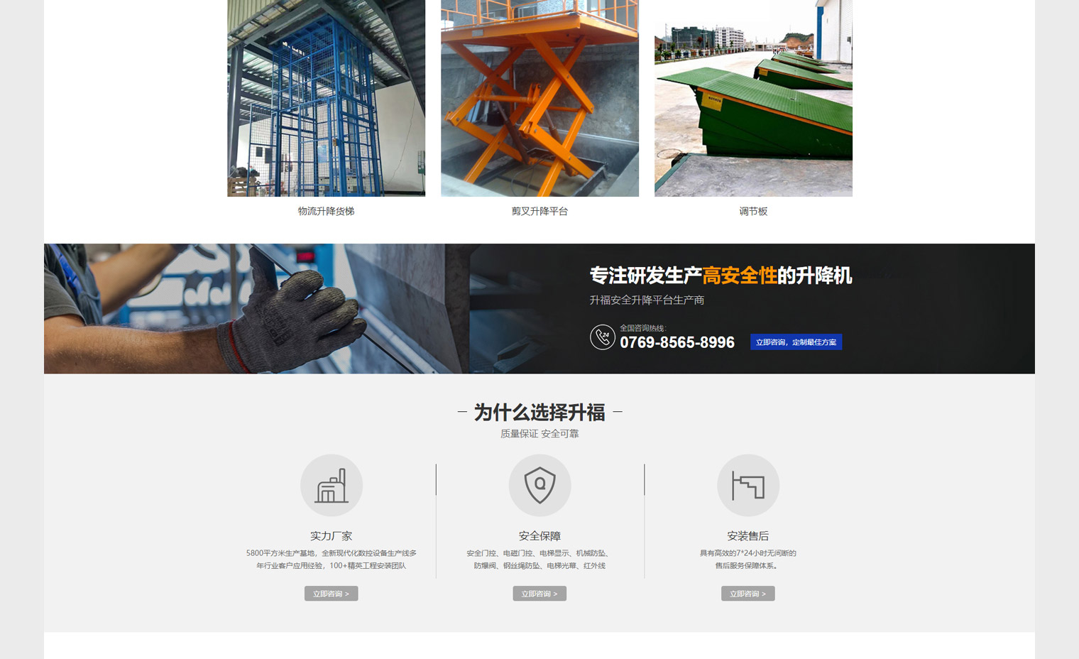 升福压液主营以压液升降系为主,网站建设结合公司定位及用户需求进行内容布局,压液升降可以应用到多个领域;如:工厂、舞台、餐梯等,但通过分析升福在工业这一块具有明显优势,网站建设核心以工厂为主,升降机本身用户对于安全性比较重视,整站在安全这一块做了重点说明,大量工程案例展示空出了行业经验。