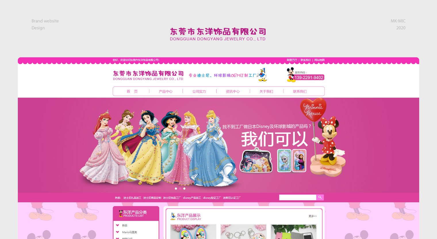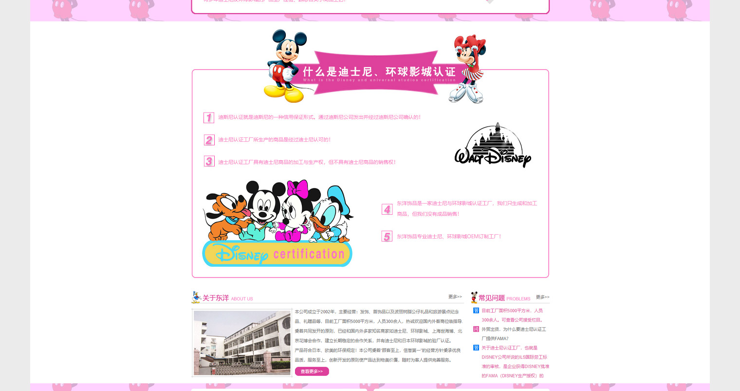 东洋饰品网站建设以推广网站,网站建设阶段通过公司定位及客户需求进内容布局,东洋饰品是迪士尼认证工厂,主要订单以迪士尼产品为主,网站设计UI阶段结合了迪士尼的元素使整个页面使萌。