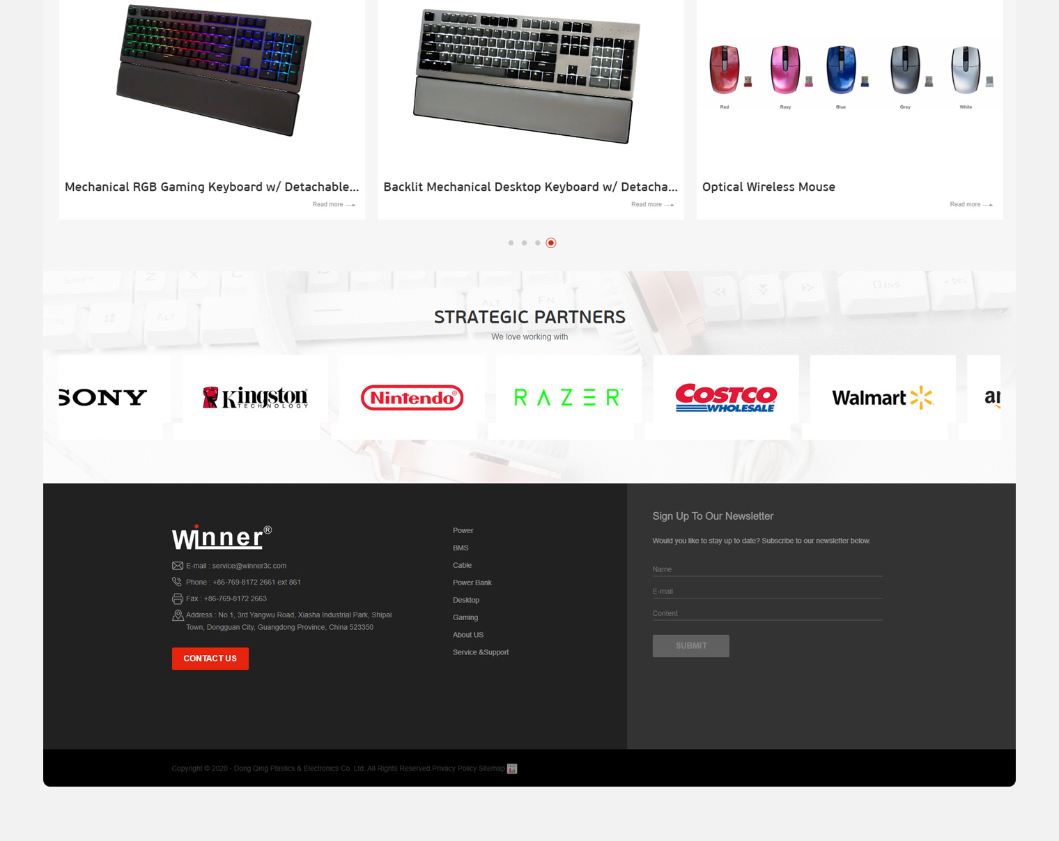 东庆电子主营以数码电子产品为主,客户群体大多为海外客户,外贸网站建设结合了行业及行业及产品的特色,主色调为黑色,辅助色为红色,整个网站搭配简约页突显产品。