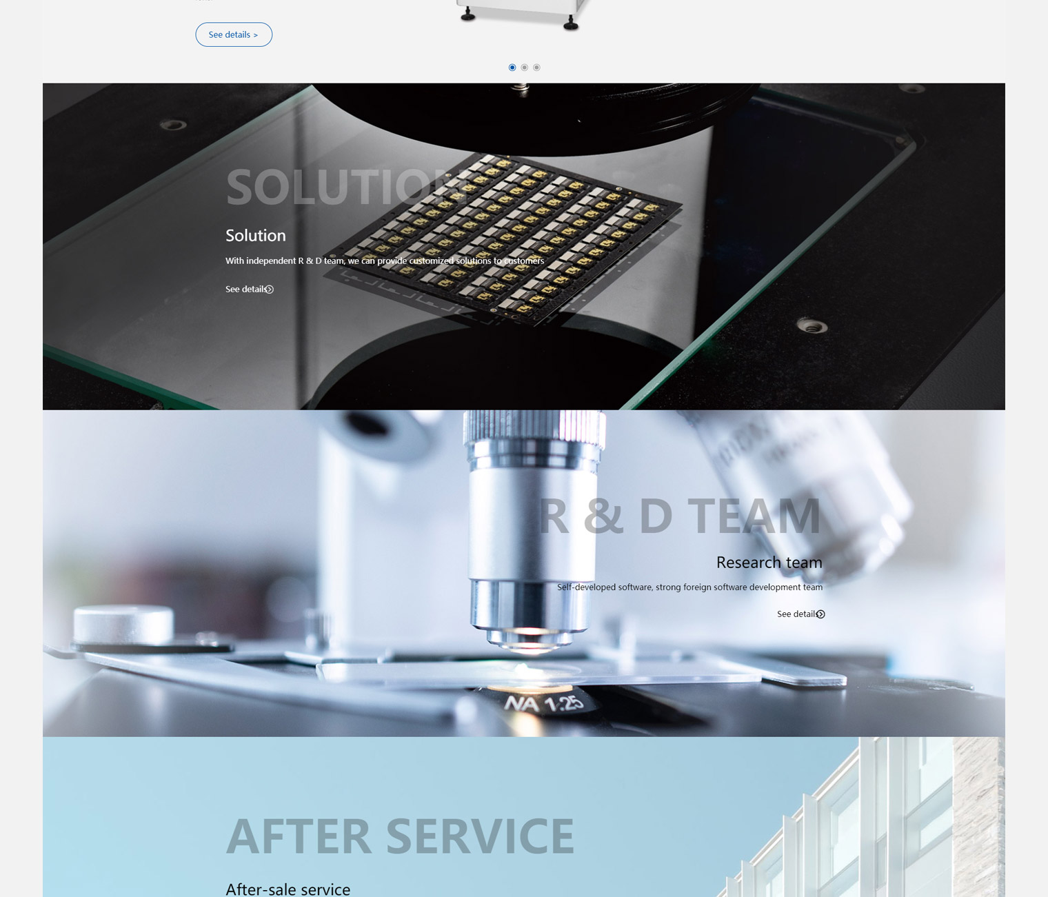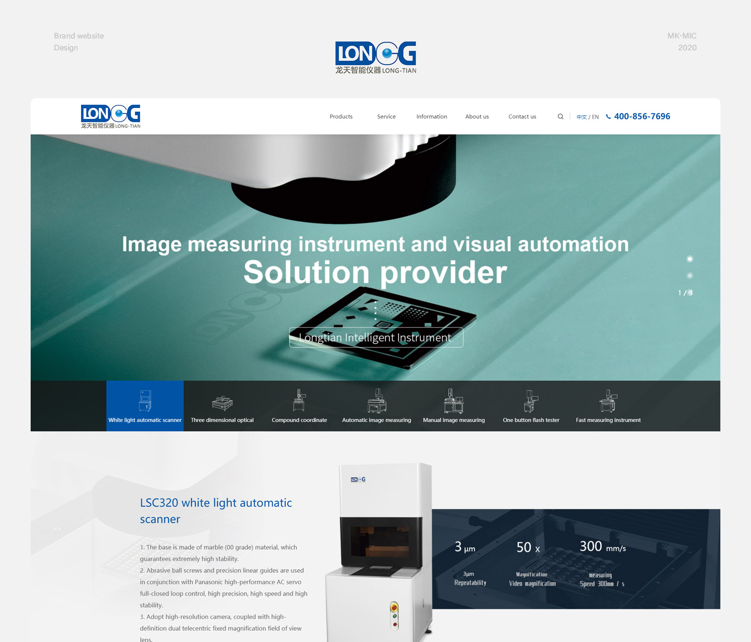 龙天智能仪器拥有强大的研发实力和生产能力,整个网站围绕“智能、科技、精密”主题来塑造,蓝绿色调突出智能仪器行业特点,使画面保证干净、大气的同时突出客户产品特点、优势,产品的独立设计页面让用户全面了解产品的同时保证每款产品的推广效果。
