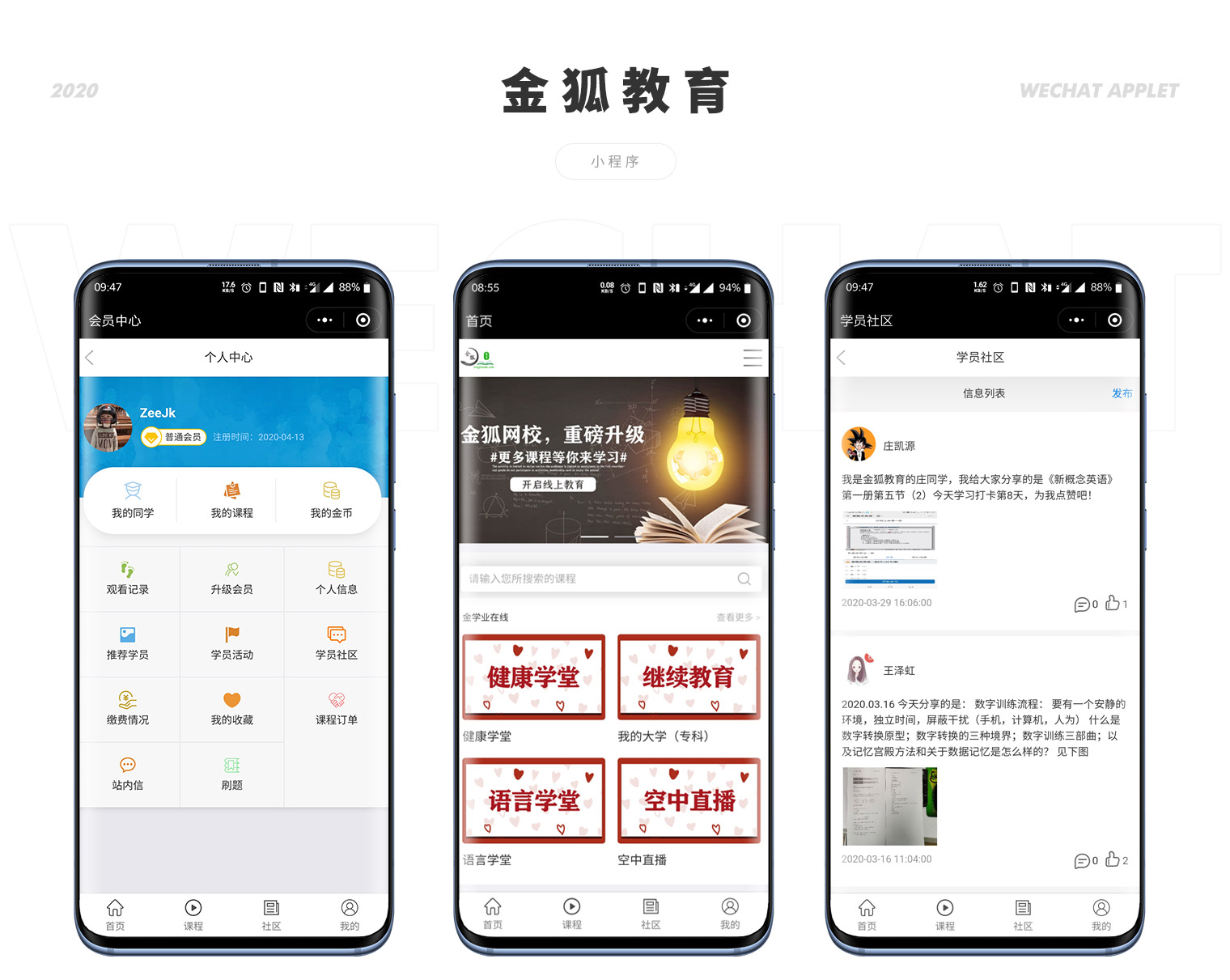 线下课程通过线上进行学习;在线课程/在线刷题/在线考试/在线报名/分销返佣/互动社区